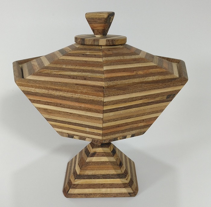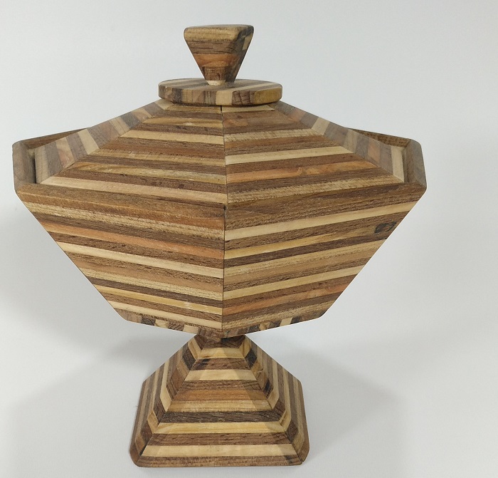ظرف شکلات خوری با درپوش تمام چوبی.